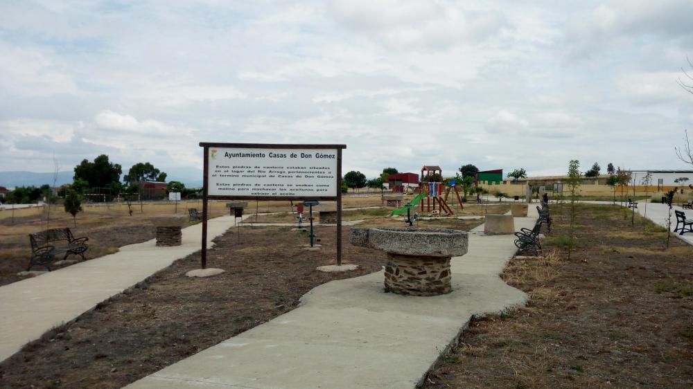 Parque municipal de Casas de Don Gómez, que se encuentra junto a la "Laguna" y que cuenta con zonas de árboles y jardines. Posee espacios para los jóvenes con columpios y toboganes y, una zona con equipamiento para los ejercicios de la 3ª Edad.